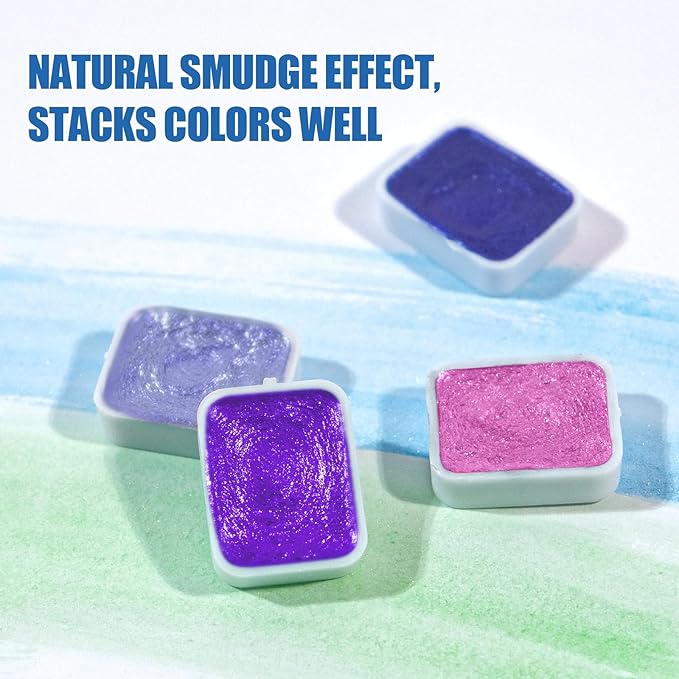 - 【Color-Blendable & Smudgeable】Professional watercolor paint set achieve a smudge effect. Water paint also allow custom mixing and blending to create various colors. Due to high pearl powder content, color vibrancy is slightly affected, but combining with regular watercolor paint sets enables an expanded color palette