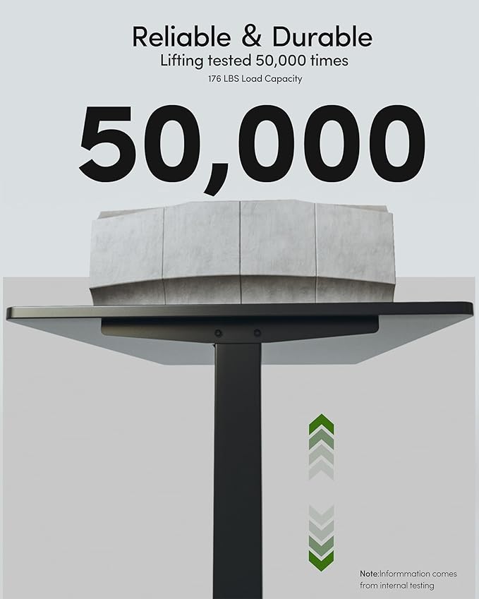 - Rock-Solid Stability: Fezibo electric standing desk is designed with a strong steel frame and powerful lift system to support up to 176 lbs of weight. Tested to withstand 50,000 lift cycles, this home office desk ensures long-lasting durability for your workspace.