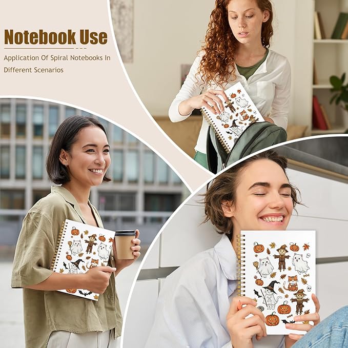 WUCHJ Halloween Notebook, Spooky Pumpkin Ghost Cat Bats Journal, Fall Maple Leaf Scarecrow Spiral Notebook Journal for Note Taking, Fall Halloween Office Supplies, 5.5x8.3 Inch