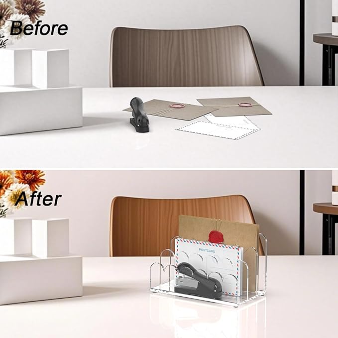 - 【🛠️ Sturdy & Reliable】Made from high-quality acrylic, this mail sorter organizer resists wear and maintains clarity over time. The stable base ensures it stays secure as a desk mail organizer.