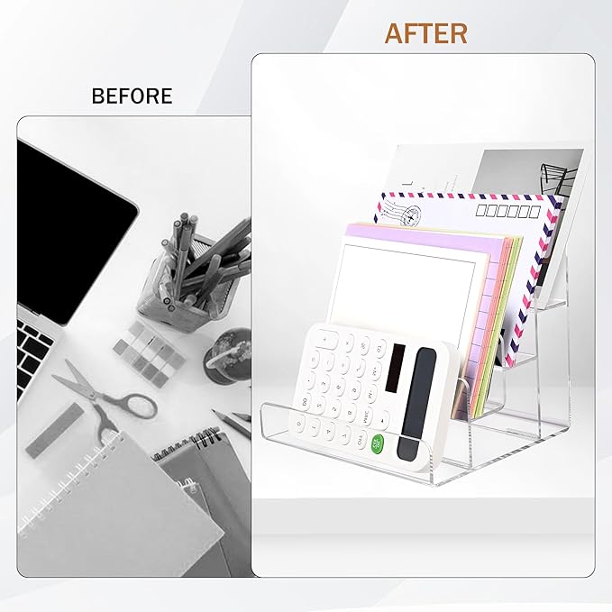 • 【Easy to Use】The Dimension of this acrylic file organizer is 6.7 x 6.1 x 6 inches,no installation needed,it's a must-have desktop organiser for office, home and school