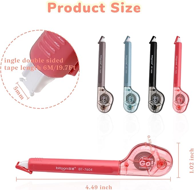- Just Like Holding Pens: The correction tape features a pen-shaped design, offering a comfortable grip, simple operation, and convenient portability without taking up much space