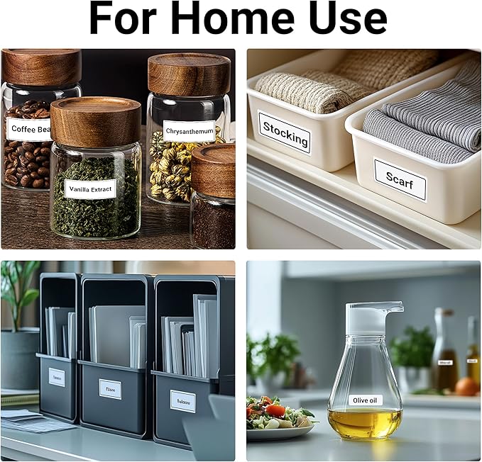 - Multi-Label Compatibility: The label maker machine with tape prints square, round, transparent, and file labels to organize home, office, or commercial spaces efficiently, maintaining clarity and order across diverse scenarios