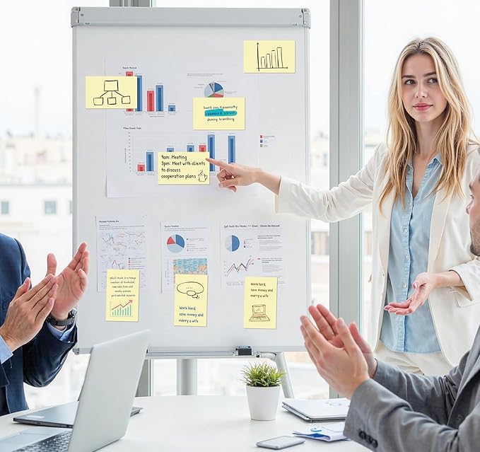 - Super Strong Adhesive: Say goodbye to notes that curl up and fall off. Our large sticky notes feature a powerful yet reliable adhesive that sticks firmly to monitors, doors, refrigerators, dashboards, and other smooth surfaces. These sticky note pads are engineered to stay flat and hold strong, guaranteeing your important messages won't get lost in the shuffle.
