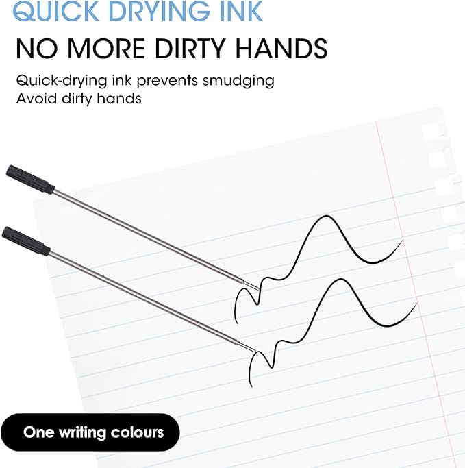 - Long-Lasting Performance: Each refill contains generous ink capacity for extended writing time. The specially sealed tip prevents drying out when not in use, while the smooth-flowing ink formula provides skip-free writing from first use to last drop