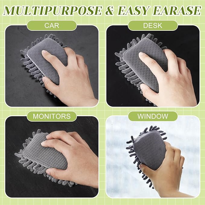 - What You Will Get: comes in 4 pieces microfiber shag dry erase board erasers, 1 pink, 1 green, 1 yellow, 1 gray; Dual surface design brings a different touch to whiteboard erasers, adds a creative spin to your office conference room or classroom; Enough quantity for your daily use and replacement