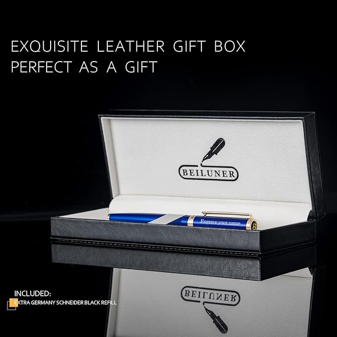 - Elegant Gift Box for Unboxing Luxury-Presented in an exquisite leather gift box, this pen is an ideal gift for any occasion. Whether it’s a birthday, graduation, or a special corporate gift, the Pen is sure to impress and leave a lasting impression. Comes with an extra Schneider refill!