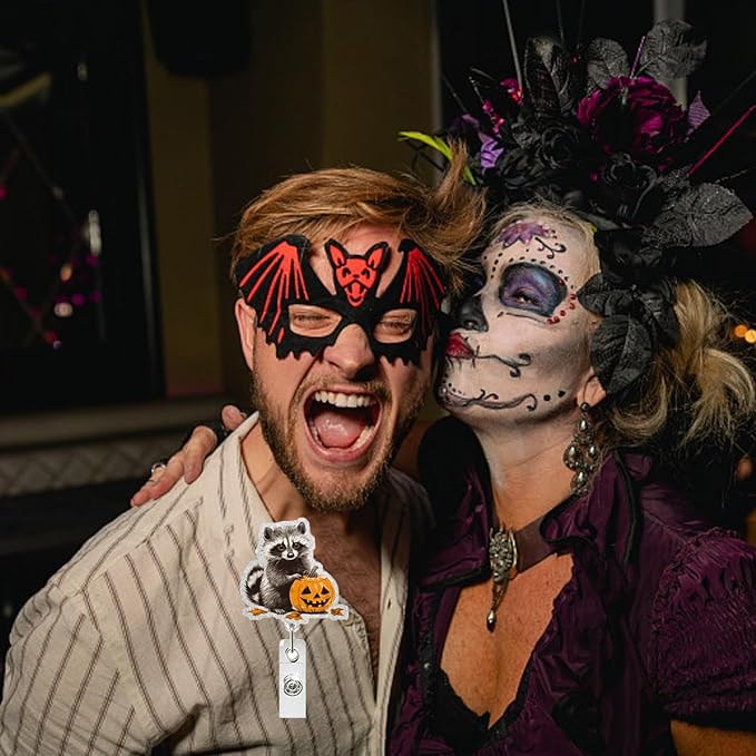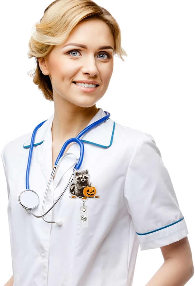 - Cute Halloween Design: The Halloween badge reel features an adorable raccoon with pumpkin design, making it a perfect accessory for the festive season, enhancing your work attire with a touch of Halloween spirit