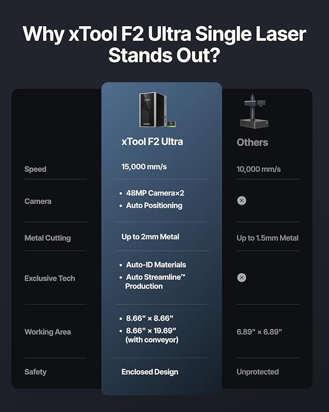 xTool F2 Ultra Single 60W MOPA Fiber Laser Engraver, 100+ Color Metal Engraving, Dual 48MP Cameras, Auto Streamline, 15,000mm/s Ultra-Fast, AI Powered 3D Laser Engraving Machine