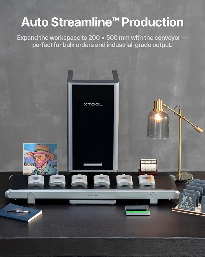 - Industrial-Grade Productivity: Operating at speeds up to 15,000mm/s, the 60W MOPA laser completes jobs with both speed and accuracy, reducing 3D embossing time by up to 80% compared to 20W fiber lasers. The F2 Ultra boasts the largest desktop fiber laser engraver working space at 8.7"x 8.7", expandable to 8.7" x 19.7" if with the auto conveyor(available separately), enabling automated batch processing for high-volume orders with a single setup.