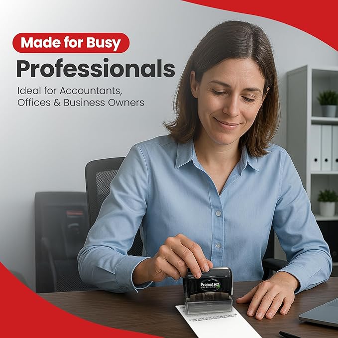 - Custom Rubber Stamp: Built with robust materials for high-volume use, it stands up to daily wear and tear. Its ergonomic design makes it comfortable to use. A great tool for any busy office or financial operation.