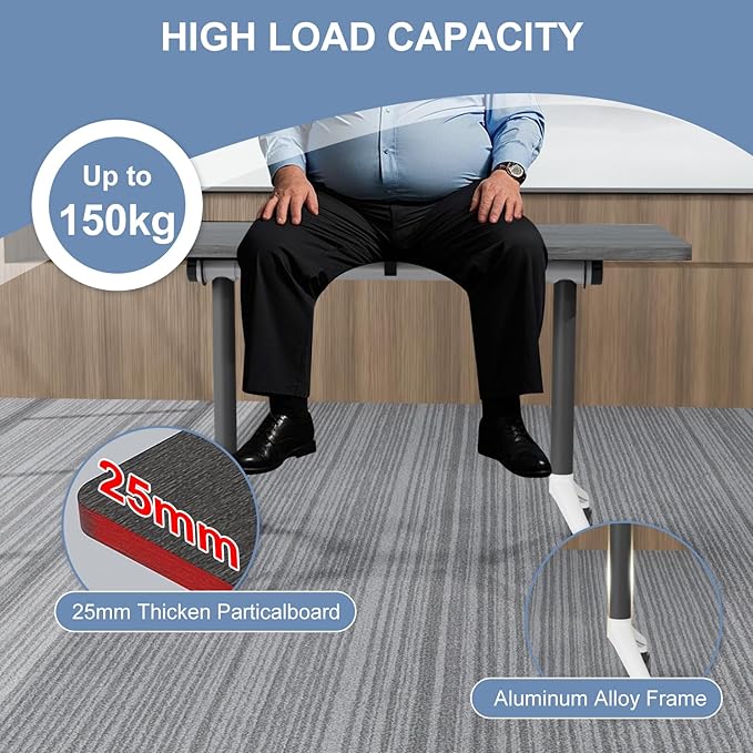 - 【Sturdy and Durable】Our conference room table adapts a 25mm thicken particalboard and alumiunum alloy frame which can make sure a strong support. Also, this kind of board is very sturdy, waterproof and resistant to stain and scratch. It make our meeting table easy to clean up. You just need to use damp cloth to clean our desktop of our seminar table.