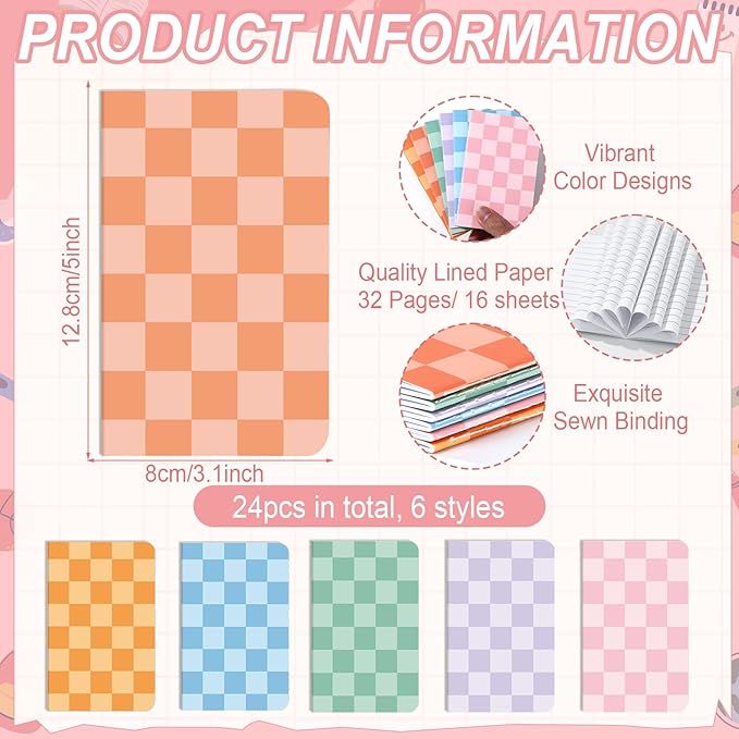 - Rich in quantity: Youโll get 24 small pocket hippie groovy notebooks in 6 vibrant colors, with 4 of each color. The wide range of colors makes them ideal for a variety of uses. Ideal for daily use or sharing with classmates and colleagues, this mini hippie checkered notebook set is both practical and fun.