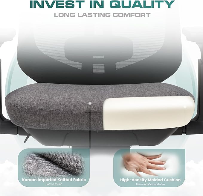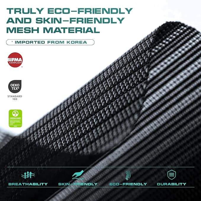 - β© VENTILATED ERGONOMIC MESH OFFICE CHAIR--Adopting high-end breathable mesh fabric imported from Korea with great flexibility and durability, the high back office chair perfectly fits the curve of your spine and protects the cervical and lumbar spine. In addition, the lumbar support also offers well support for your back.